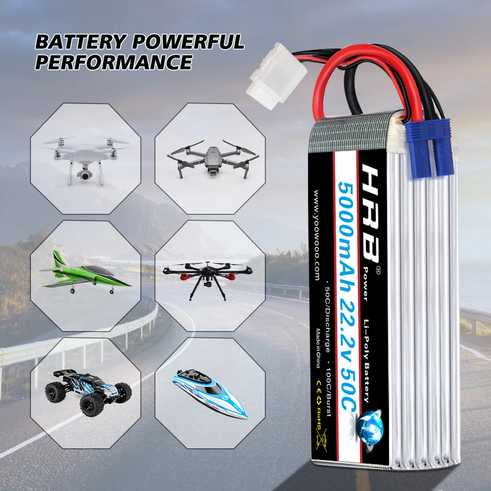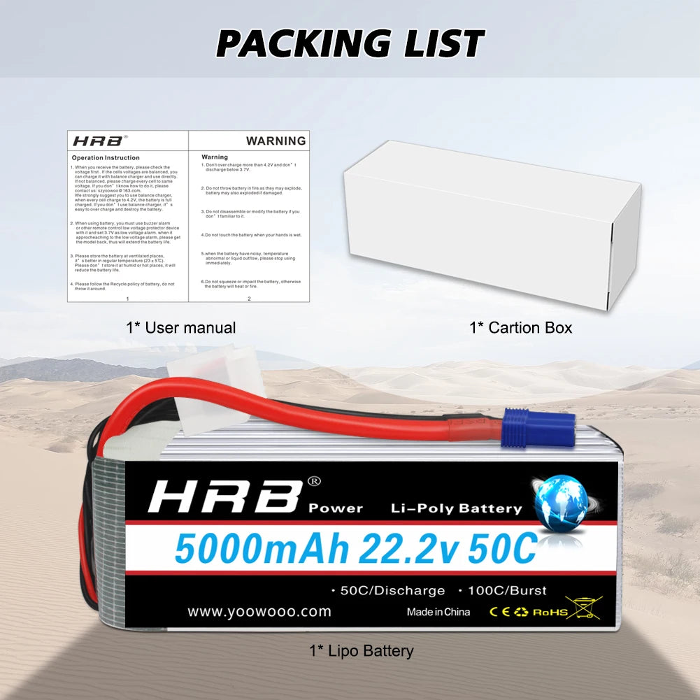 2pcs HRB 22.2V 5000mAh 50C-100C 6S RC Lipo Battery For Remote Control Car Quadcopter Helicopter Multicopter Drone