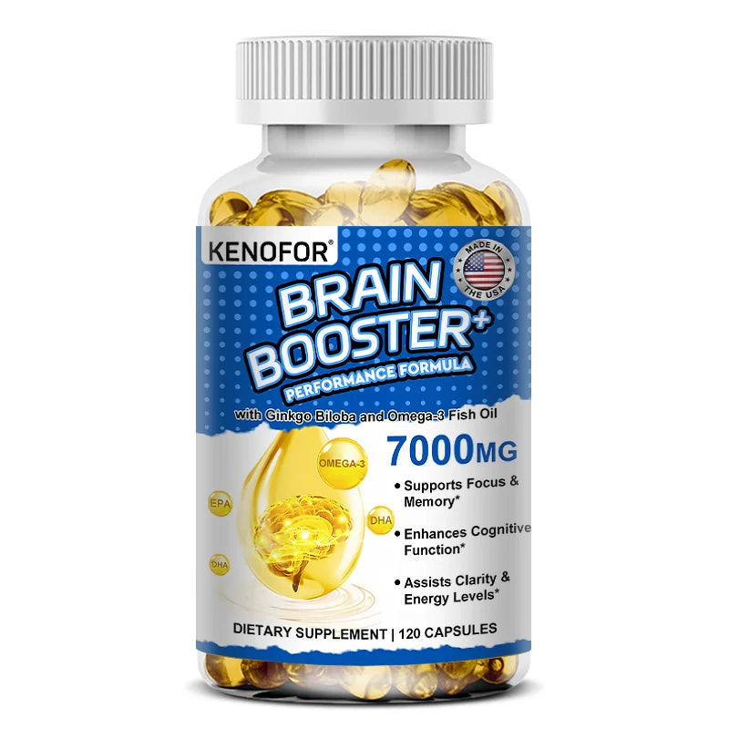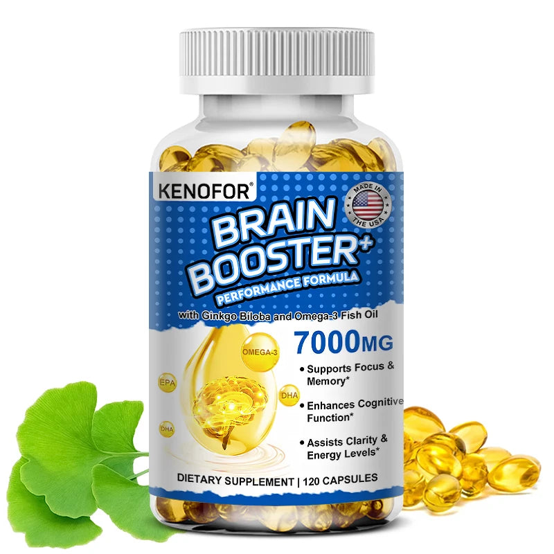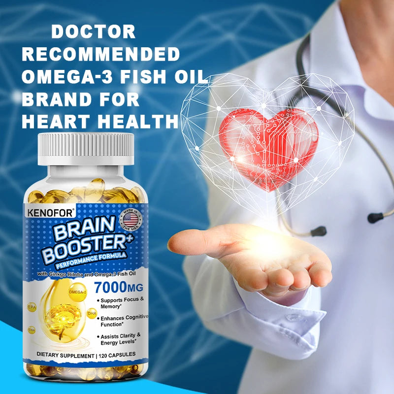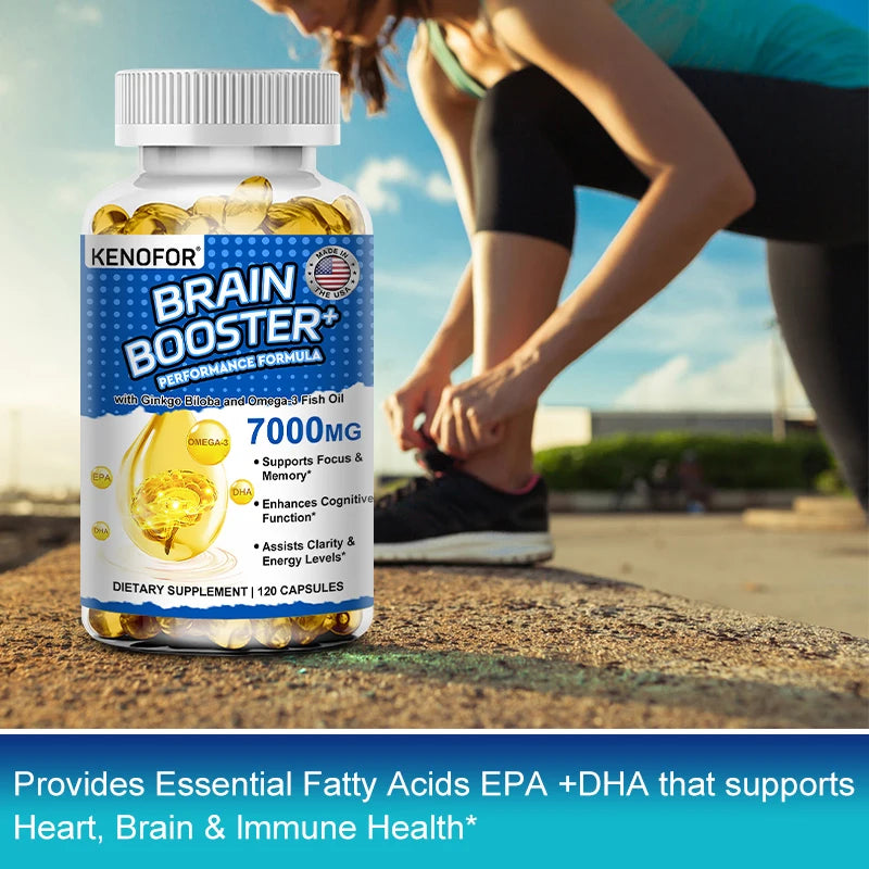 Brain Booster - with Ginkgo Biloba, Omega 3 Fish Oil DHA & EPA - for Enhanced Brain Function and Cardiovascular Health Support